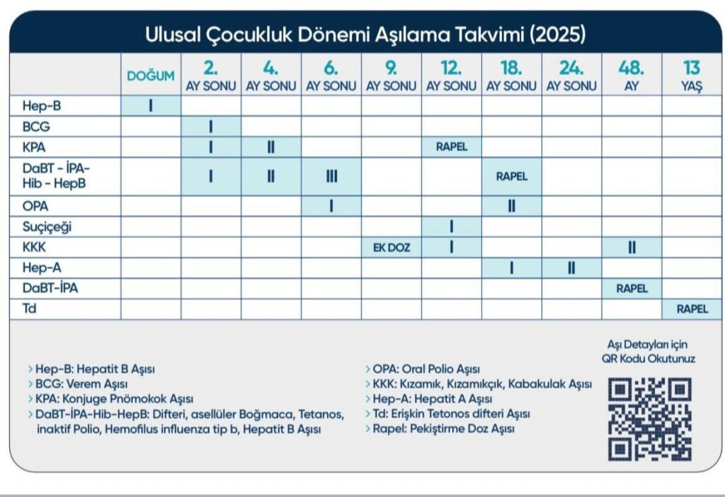 Aşı takvimi 2025 Nisan ayından itibaren aşağıdaki gibi güncelenecektir.