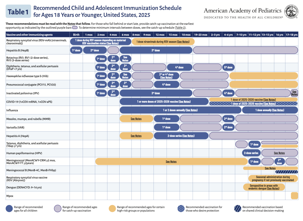 AAP (Amerikan Pediatri Akademisi 2025) Önerilen Aşı Takvimi (0-18 Ay)